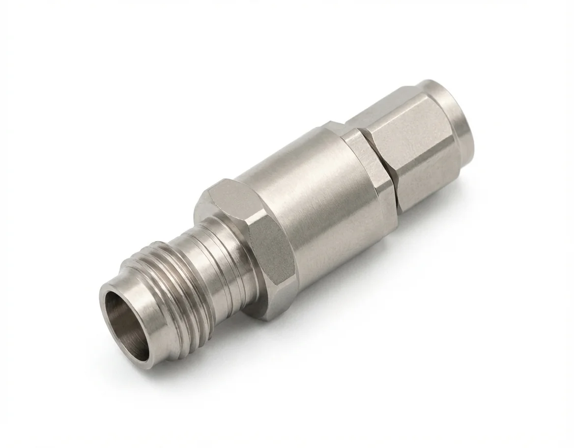 With its stainless steel body and gold-plated beryllium copper contacts, the 1.85mm Female to 1.0mm Male RF Adapter ensures a low insertion loss of ≤0.25 dB and a VSWR better than 1.25:1, even at the upper end of its frequency range. The straight-body configuration allows for compact integration into test setups or dense assemblies while maintaining consistent electrical performance across thousands of mating cycles.
