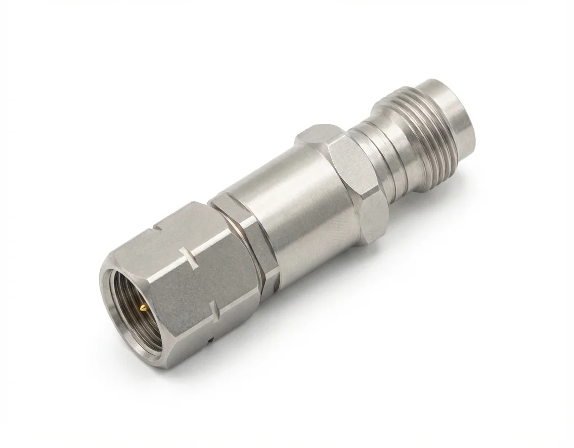 The 2.4mm Male to 1.85mm Female RF Adapter – 2.4/1.85-JK1, also referred to as 1.85mm Female to 2.4mm Male RF Adapter – 1.85/2.4-KJ1, is a high-frequency coaxial adapter designed for seamless interface conversion between 2.4mm male and 1.85mm female connectors. This straight coaxial adapter is ideal for use in hybrid systems that combine legacy 1.85mm ports with modern 2.4mm interfaces, ensuring reliable signal continuity across demanding RF environments.