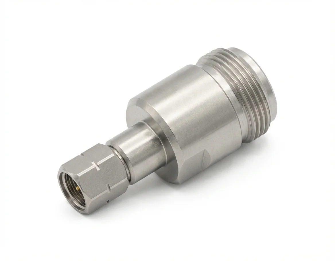 Operating up to 18 GHz with a characteristic 50-ohm impedance, the 2.4mm Male to N Female RF Adapter is ideal for hybrid test systems, antenna measurements, and signal routing applications where rugged N-type connectors are still in use. Common application areas include VNA calibration environments, 5G radio unit testing, and unmanned aerial RF systems.