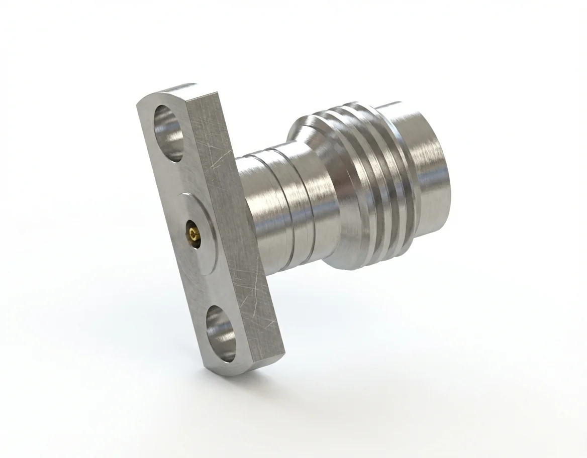 The 1.85-KFD11 2-hole flange mount RF connector is suitable for microwave analyzers, calibration ports, and test fixtures requiring compact, high-stability interfaces. Mechanc provides customization services including flange re-sizing, plating alternatives, and non-magnetic materials tailored to specific RF or environmental conditions.