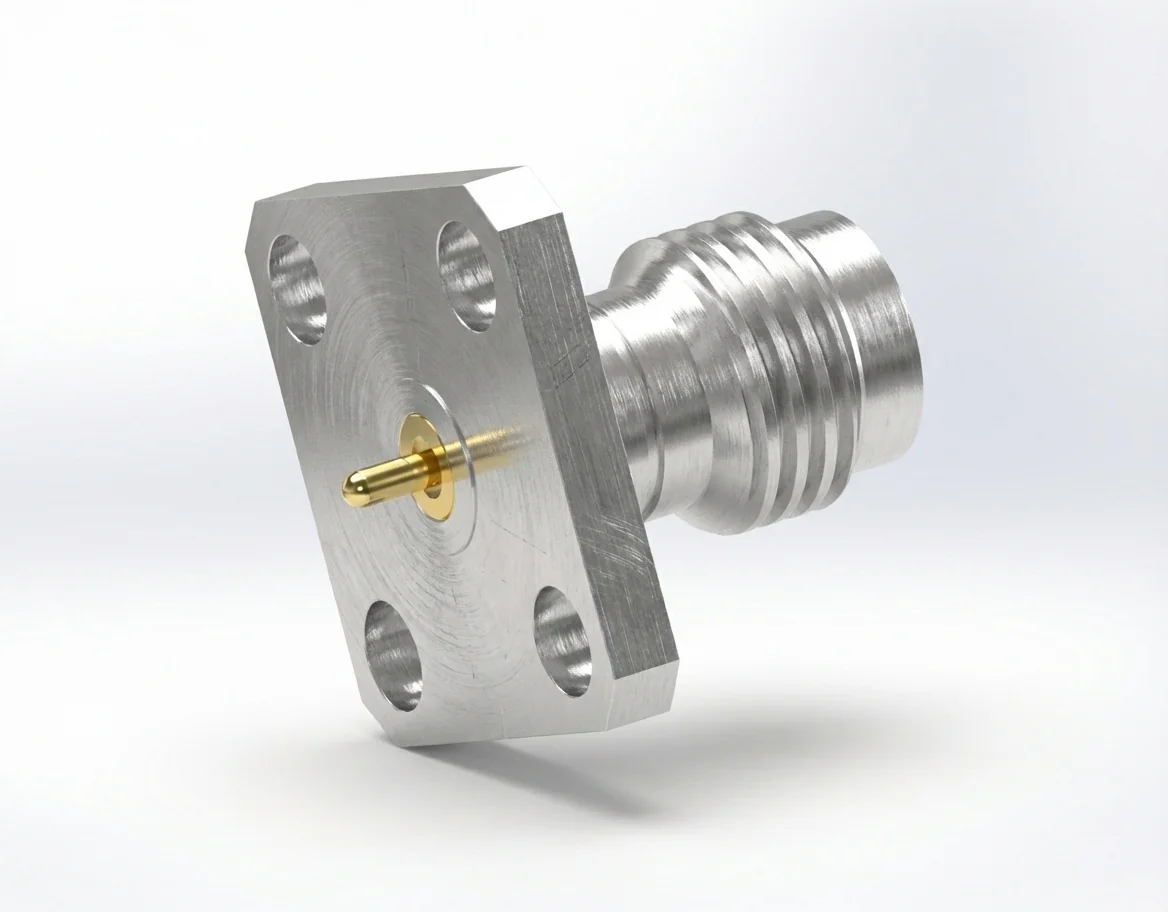 The 1.85-KFD2 4-hole flange mount RF connector is commonly used in frequency-extension heads, precision analyzers, and RF calibration standards operating to 67 GHz. Mechanc provides tailored engineering options, including modified flange geometries, alternate materials, and surface-finish adjustments to meet specialized design or environmental requirements.