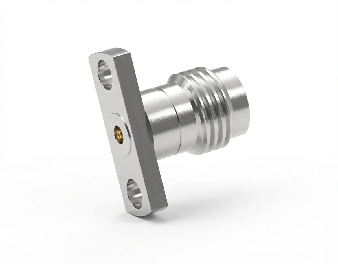 Featuring VSWR ≤ 1.2 and insertion loss ≤ 0.06 √F(GHz) dB, the 2.4mm female 2-hole flange mount RF connector minimizes reflection and maintains precise impedance alignment. The 0.30 mm pin diameter ensures both robust mechanical contact and accurate high-frequency response.