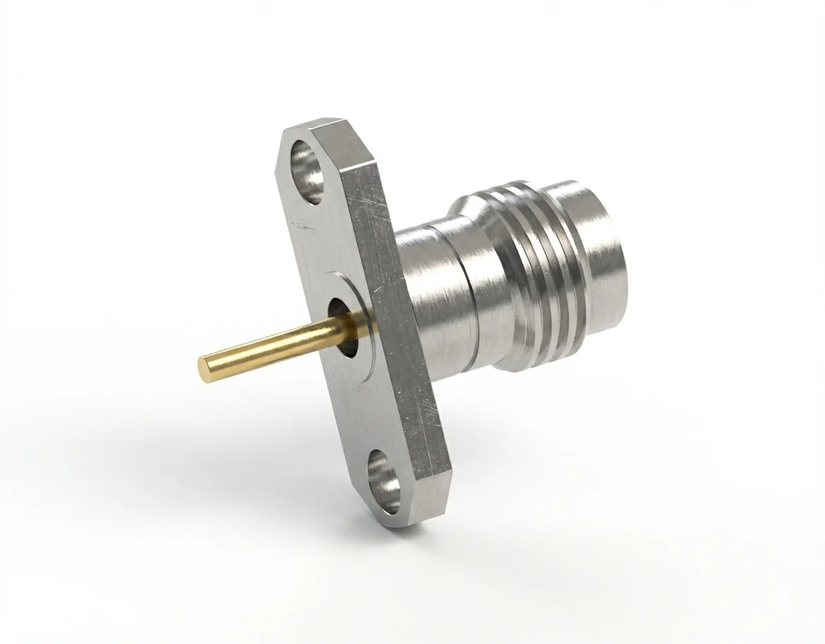 Delivering VSWR ≤ 1.18 and insertion loss ≤ 0.06 √F(GHz) dB, the 2.4mm female 2-hole flange mount RF connector ensures minimal reflection and stable signal transfer across broadband test frequencies, supporting accurate measurement in ultra-high-frequency applications.
