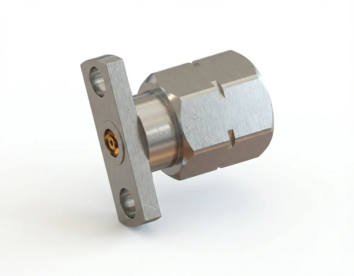 This connector is often used in precision network analyzers, frequency control equipment, and modular RF testing platforms featuring 2-hole flange mount RF connectors for repeatable precision.