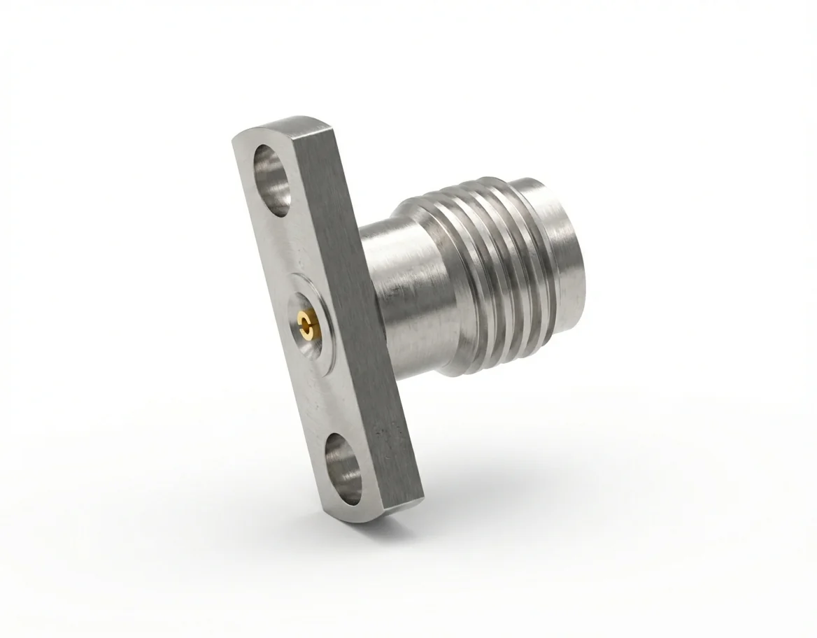 Featuring VSWR ≤ 1.15 and insertion loss ≤ 0.06 √F(GHz) dB, the 2.92 mm female 2-hole flange mount RF connector ensures stable transmission and low return loss. The 0.51 mm pin provides a wider contact surface for high-power integrity.