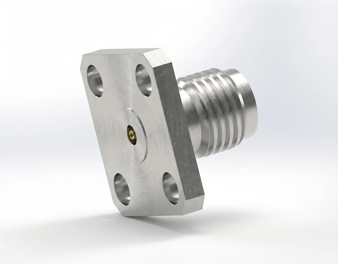 With VSWR ≤ 1.15 and insertion loss ≤ 0.06 √F(GHz) dB, the 2.92 mm female 4-hole flange mount RF connector maintains consistent return loss and signal amplitude. The 0.30 mm pin offers excellent contact resilience and alignment stability.