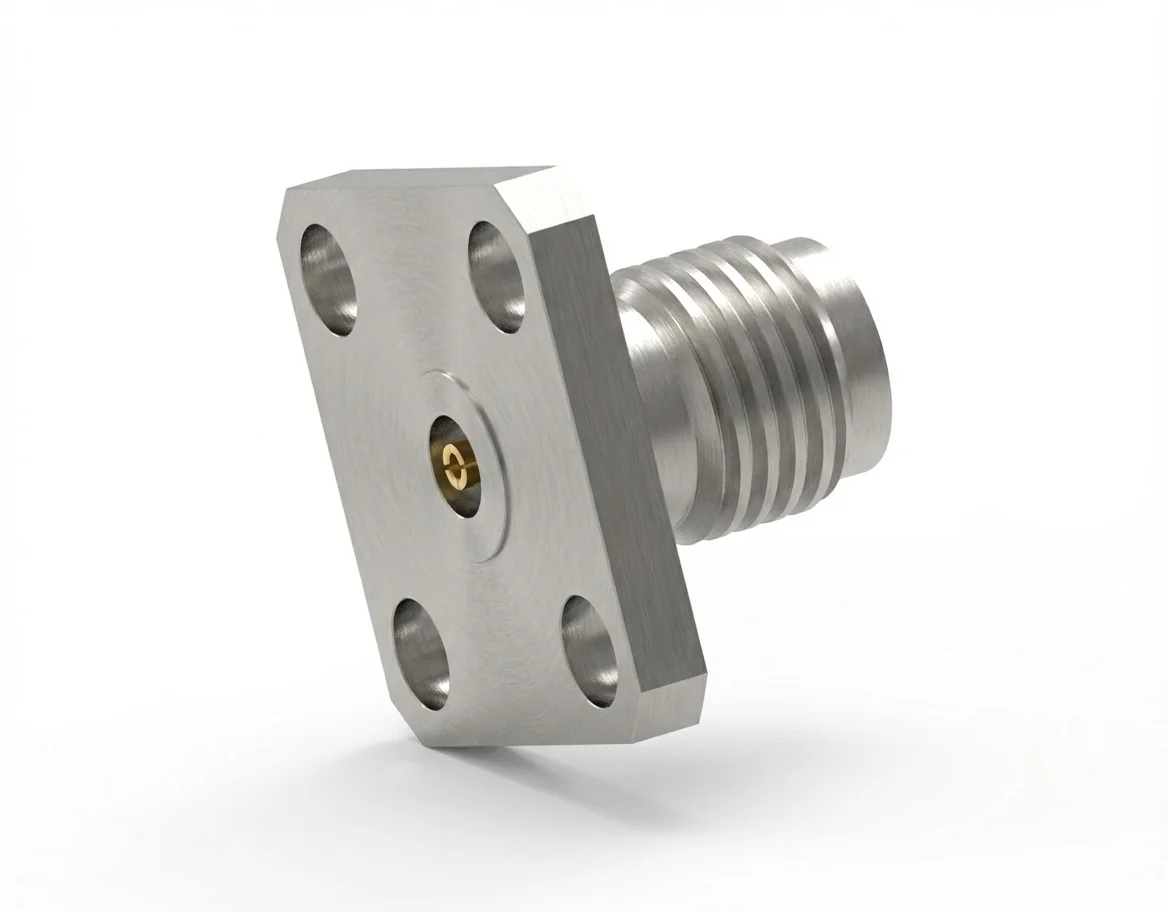 Offering VSWR ≤ 1.15 and insertion loss ≤ 0.06 √F(GHz) dB, the 2.92 mm female 4-hole flange mount RF connector maintains phase stability and minimal reflection. The 0.51 mm pin enhances contact pressure, extending the lifespan in frequent-use environments.