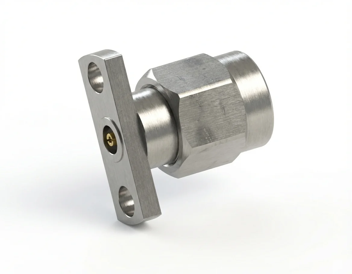 Featuring VSWR ≤ 1.15 and insertion loss ≤ 0.06 √F(GHz) dB, the 2.92 mm male 2-hole flange mount RF connector provides low-loss signal transfer and precise impedance control.
