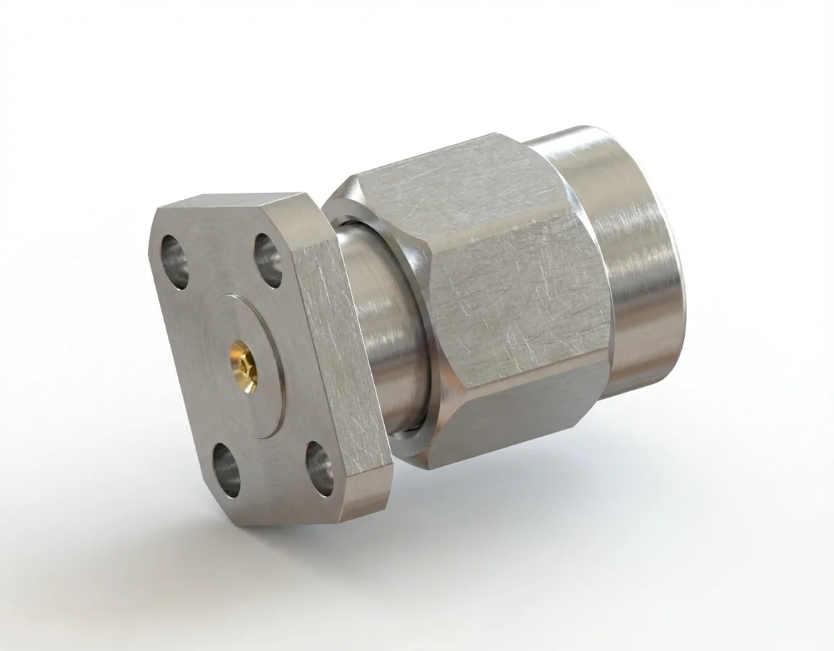 With VSWR ≤ 1.15 and insertion loss ≤ 0.06 √F(GHz) dB, the 2.92 mm male 4-hole flange mount RF connector guarantees consistent phase response. The 0.23 mm pin supports fine-alignment applications where microwave stability is critical.