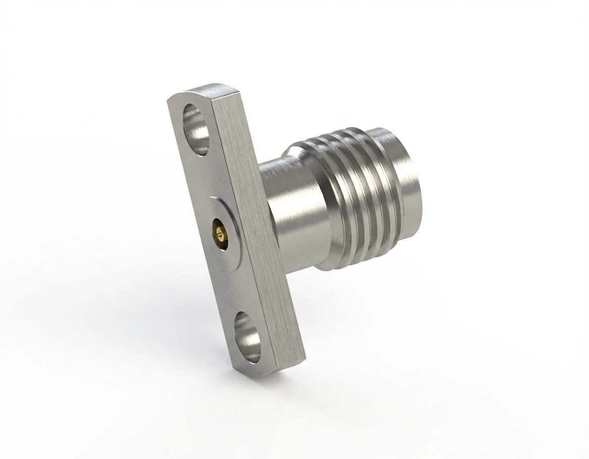 The 3.5 mm female 2-hole flange mount RF connector with a 0.23 mm pin and 10.2 mm spacing combines mechanical efficiency with precision RF performance up to 26.5 GHz. Its field-replaceable design makes it suitable for compact laboratory and OEM integration.