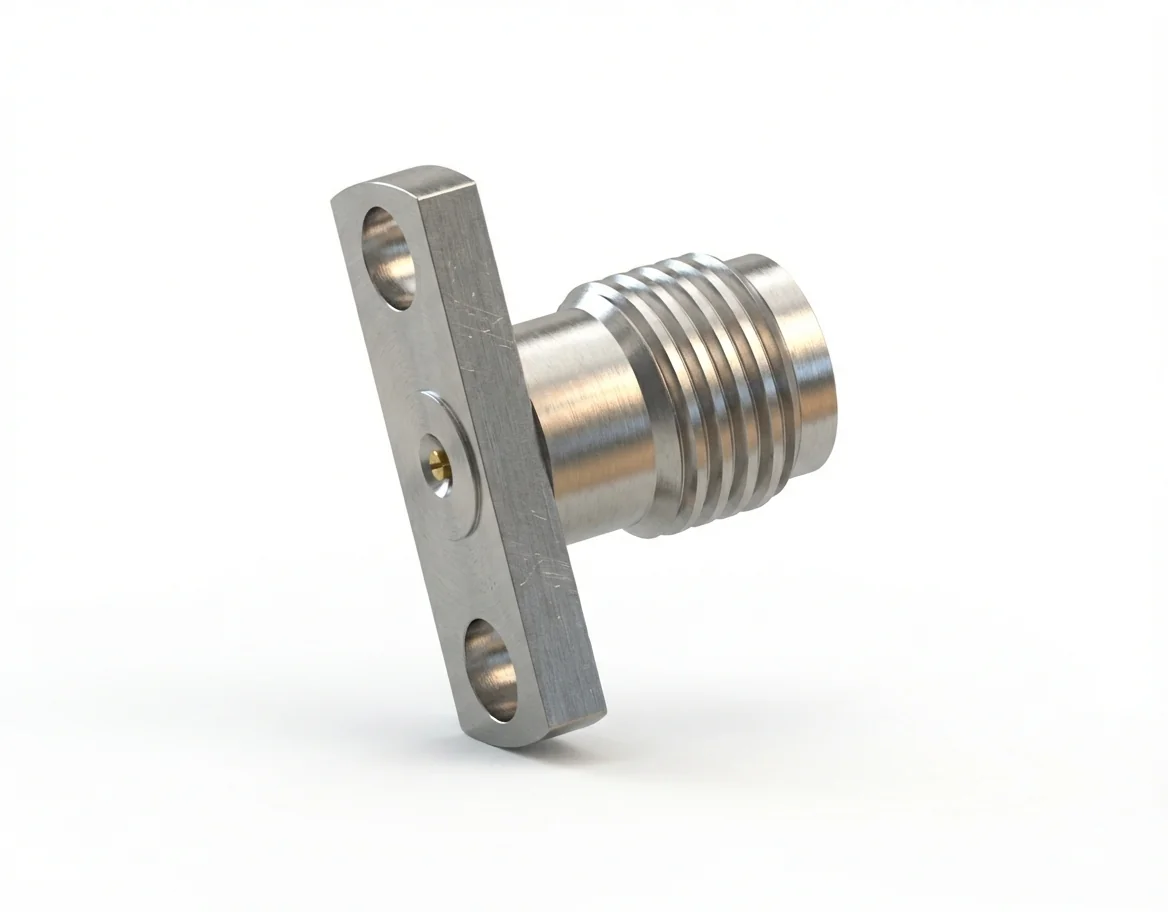 The 3.5 mm female 2-hole flange mount RF connector with a 0.23 mm pin and 10.2 mm spacing combines mechanical efficiency with precision RF performance up to 26.5 GHz. Its field-replaceable design makes it suitable for compact laboratory and OEM integration.