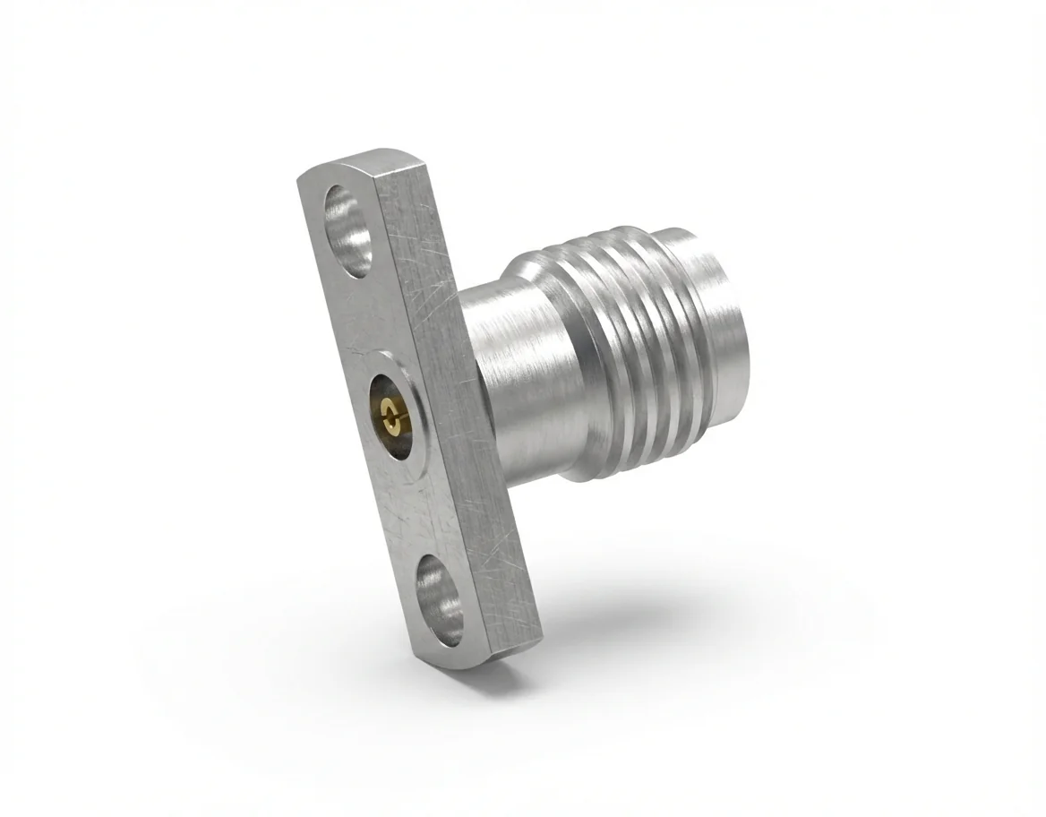 The 3.5 mm female 2-hole flange mount RF connector with a 0.46 mm pin and 10.2 mm spacing combines high-frequency precision with compact, rugged design. Its field-replaceable structure allows for efficient connector replacement while maintaining consistent impedance performance.