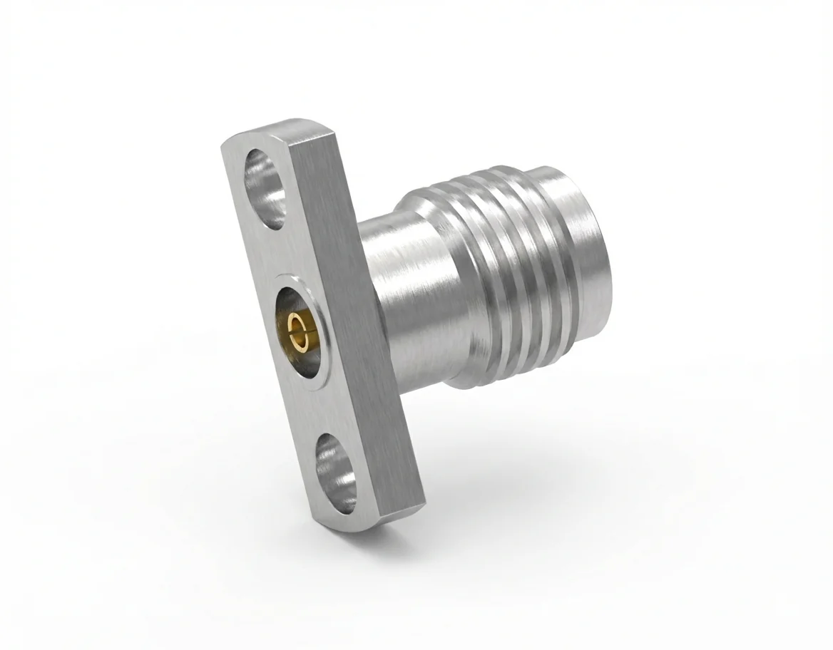 The 3.5 mm female 2-hole flange mount RF connector with a 0.9 mm pin and 12.7 mm hole spacing delivers broadband precision and repeatable RF performance for high-frequency systems. Designed as a field-replaceable connector, it allows convenient maintenance without compromising electrical stability or mechanical accuracy up to 26.5 GHz.