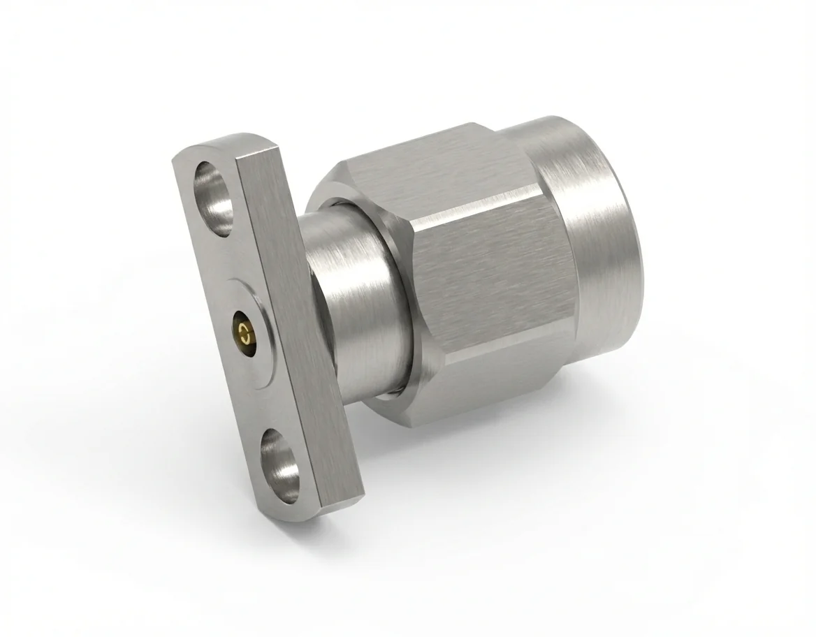 The 2-hole flange mount footprint with 12.7 mm spacing ensures easy alignment and secure attachment for analyzer housings, RF panels, and test enclosures. The design enhances mechanical precision for field assembly. Review our RF connector catalog for additional field-replaceable solutions.