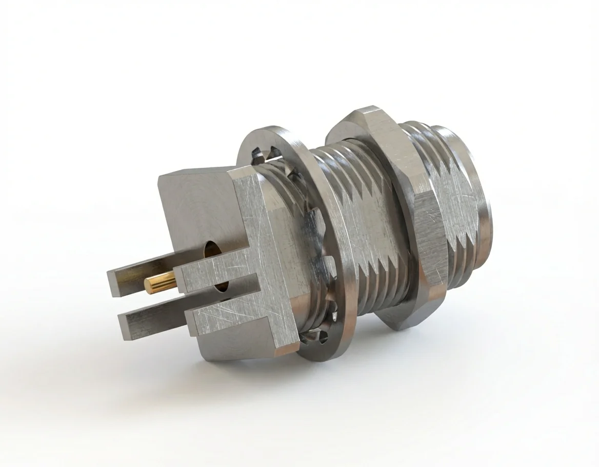 This connector’s bulkhead design allows it to be directly mounted on panels and test enclosures while providing a clean PCB solder interface. Ideal for use in flange mount assemblies, analyzers, test stations, and communication modules, it ensures a secure electrical connection with excellent mechanical retention.