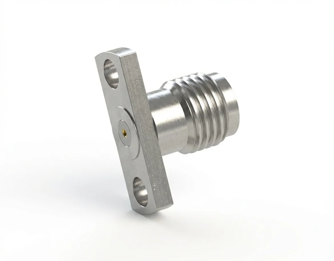 The SMA female 2-hole flange mount RF connector with a 0.23 mm pin and 10.2 mm hole spacing provides precise electrical performance for miniaturized calibration systems, broadband analyzers, and RF measurement equipment. Its field-replaceable construction ensures efficient maintenance and reliable high-frequency stability.
