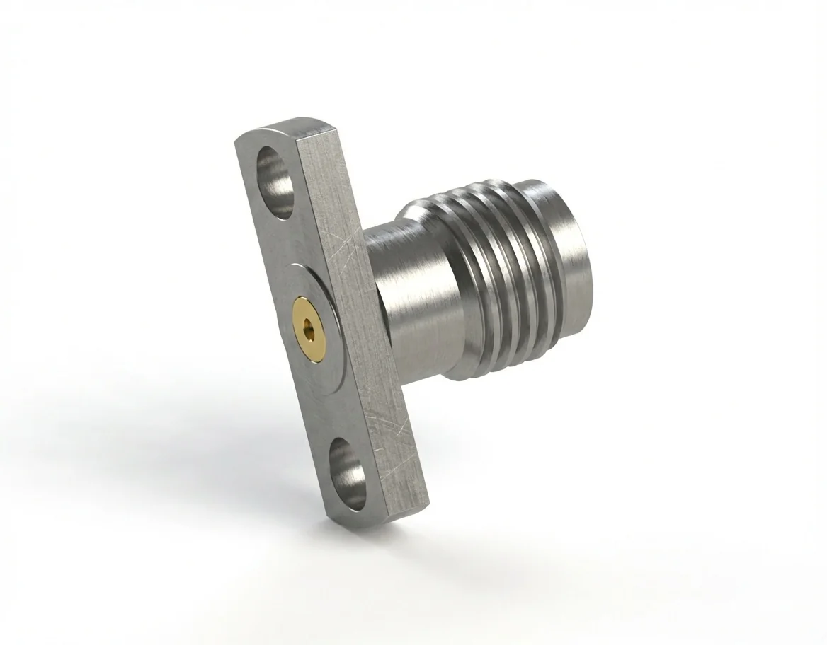 The 2-hole flange mount (10.2 mm spacing) allows easy installation and firm alignment in compact RF instruments. Its low-profile design suits dense system layouts while maintaining long-term stability. Visit our RF connector catalog for matching products.