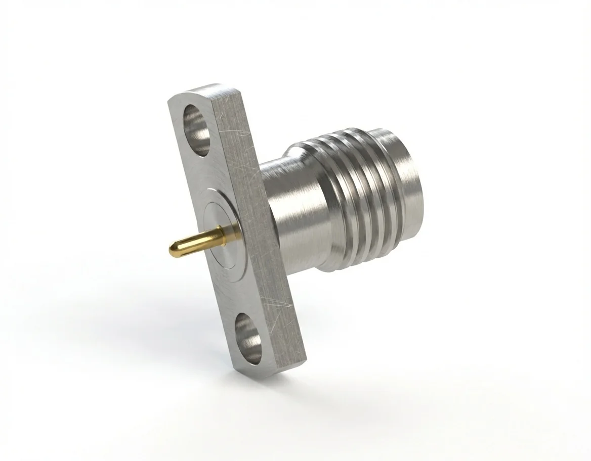 The SMA female 2-hole flange mount RF connector with a 0.51 mm pin and 10.2 mm hole spacing is engineered for broadband test equipment, calibration fixtures, and precision RF measurement platforms. The field-replaceable mechanism guarantees repeatable performance and simplifies connector servicing.