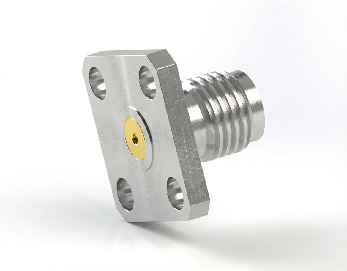 The 4-hole flange mount system (8.64 mm spacing) allows secure, vibration-resistant installation in compact instruments and RF panels. It ensures stable alignment and low mechanical stress during re-mating cycles. See more high-performance connectors in the RF connector catalog.