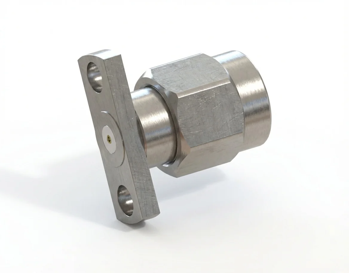 The SMA male 2-hole flange mount RF connector with a 0.23 mm pin and 10.2 mm hole spacing is ideal for compact broadband systems and calibration modules. Its field-replaceable configuration allows quick servicing and ensures repeatable impedance alignment in high-frequency setups.